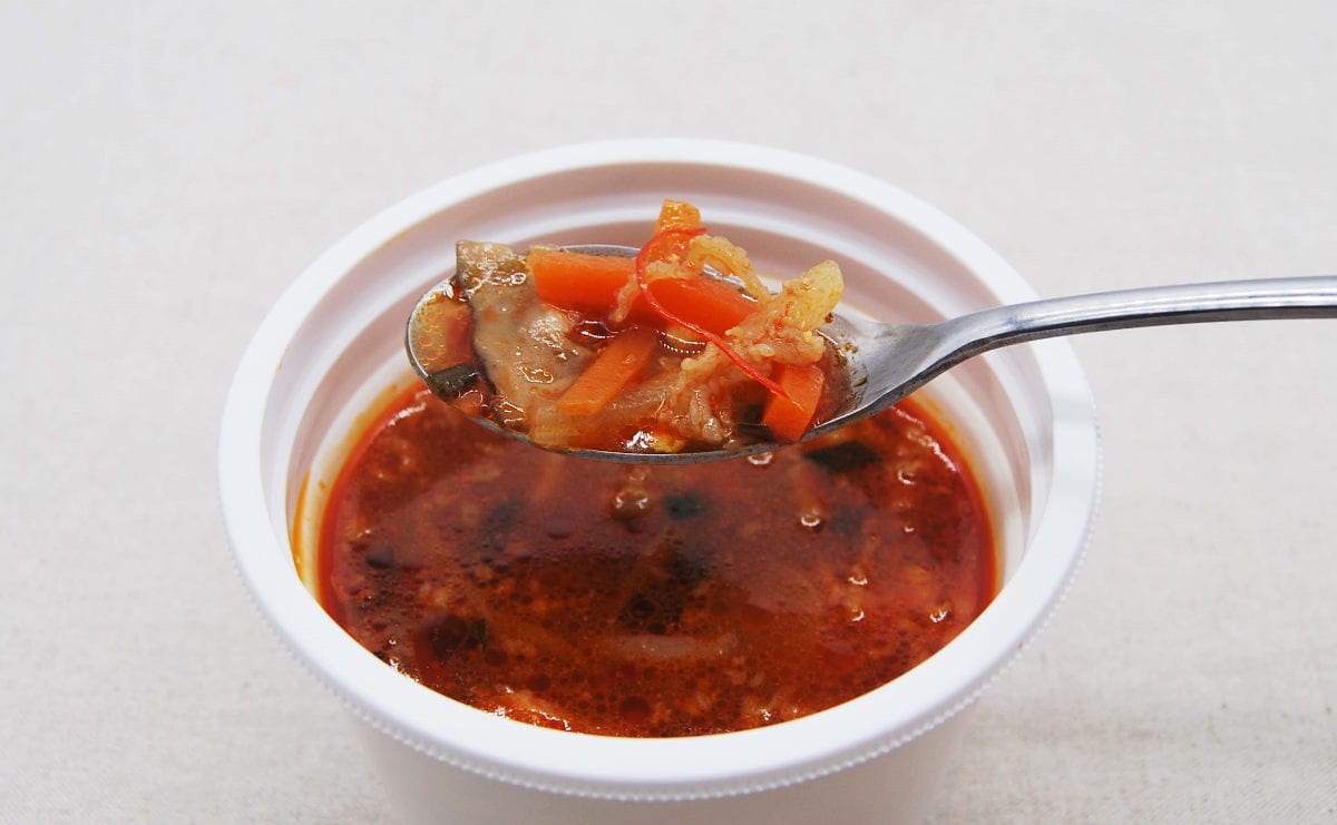 この食べ応え!コチュジャンの辛みが癖になるセブンの「お肉沢山! こだわり玉子のユッケジャンスープ」