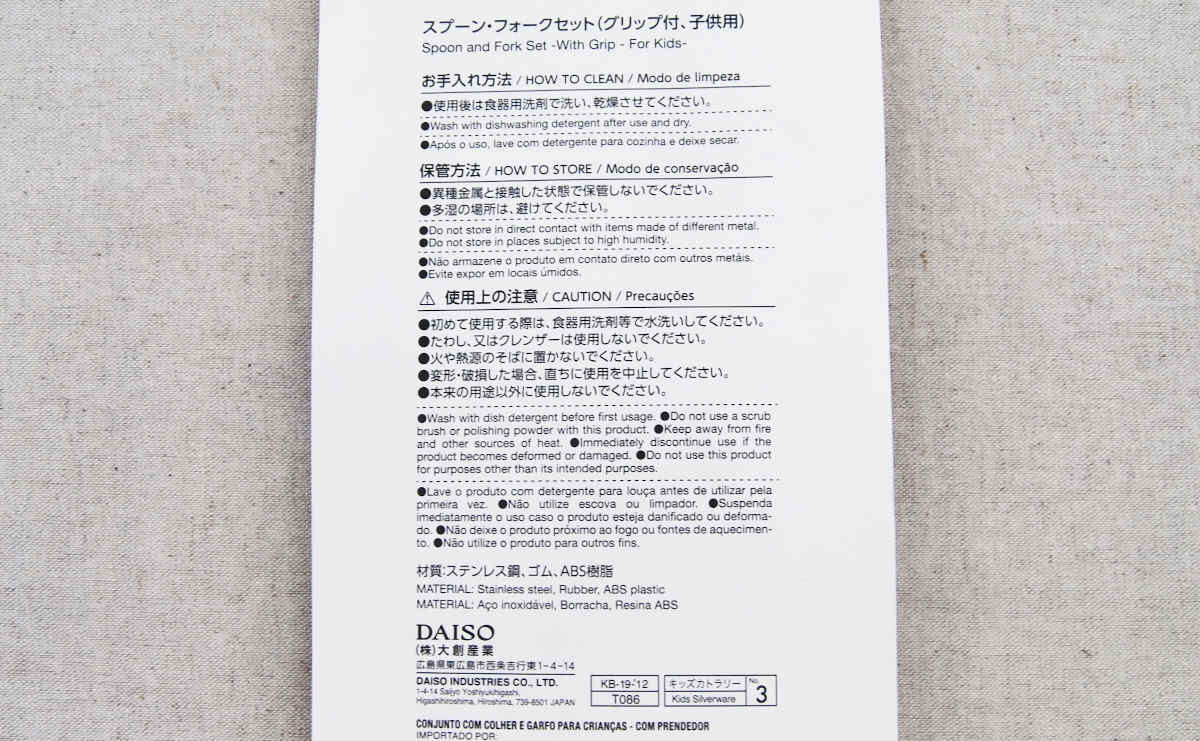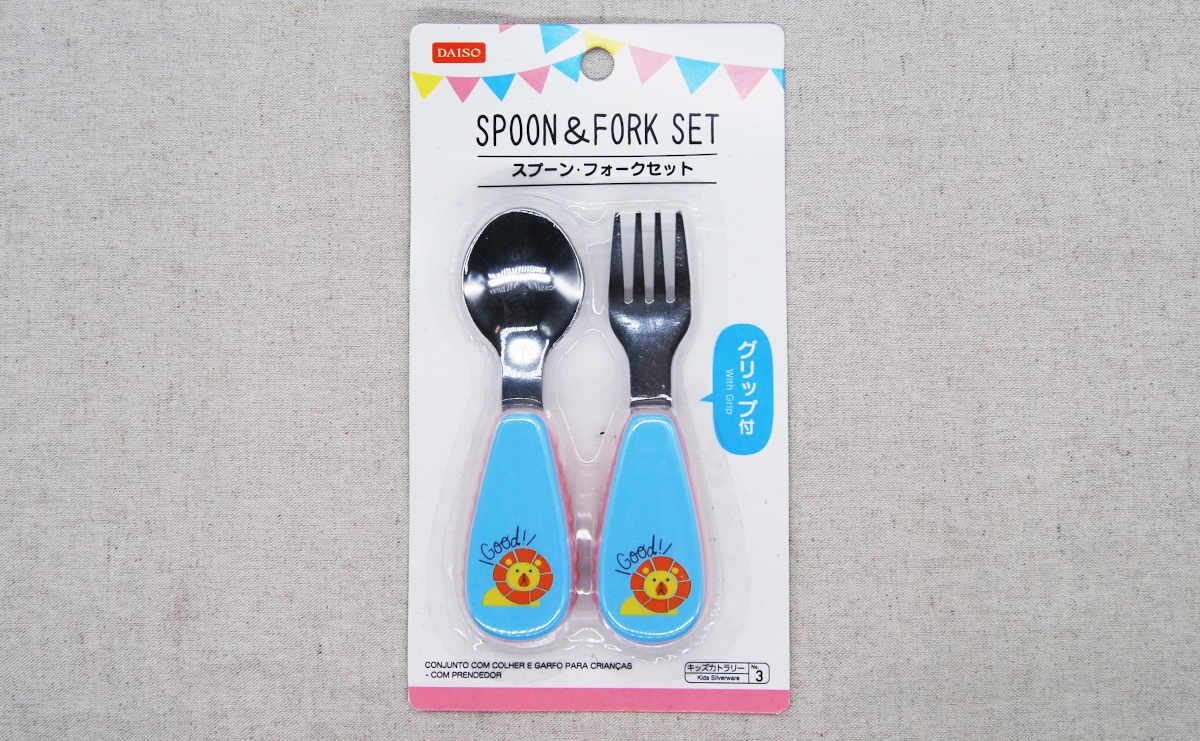 子どもが持ちやすいグリップがポイント!ダイソーの「スプーン・フォークセット」