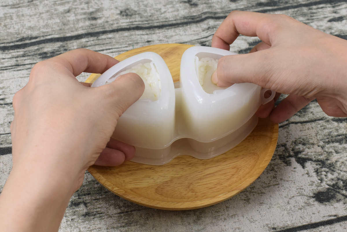 続いて海苔を2枚挟んで実証します。先ほどよりも多少力が必要ですが、2枚でも問題なくパンチできました。一回のパンチで2つのニコニコ海苔が完成してとっても時短に。