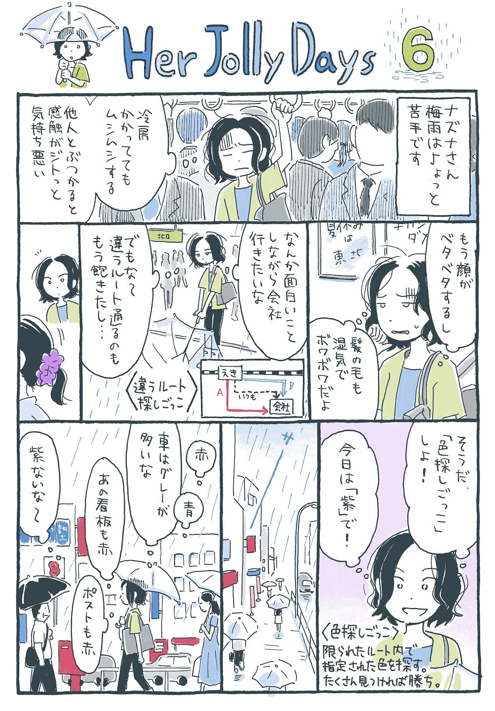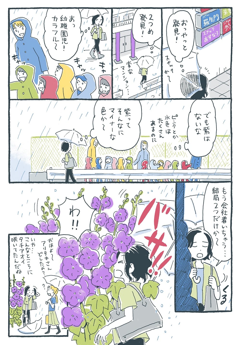 「雨の日の通勤が苦手な私は…紫を探した」