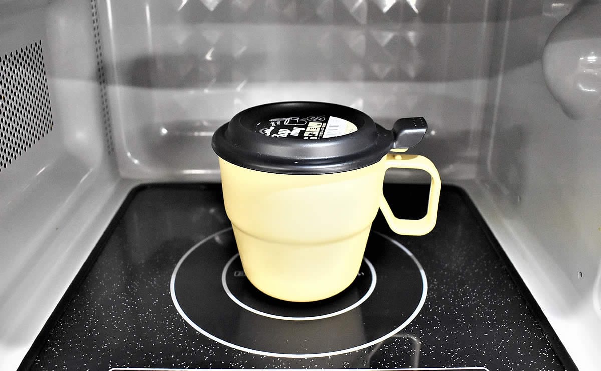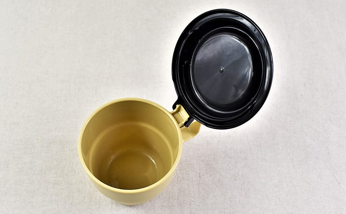 「あー!PCの上にコーヒーこぼした…」がなくなる!セリアのフタつき「フラップマグ ベージュ」