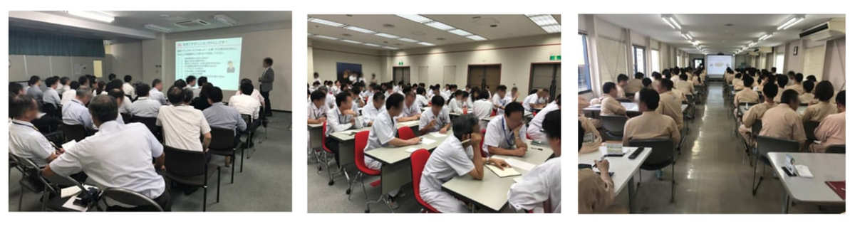 左から、支店での説明会の様子、研究所での説明会の様子、工場での説明会の様子