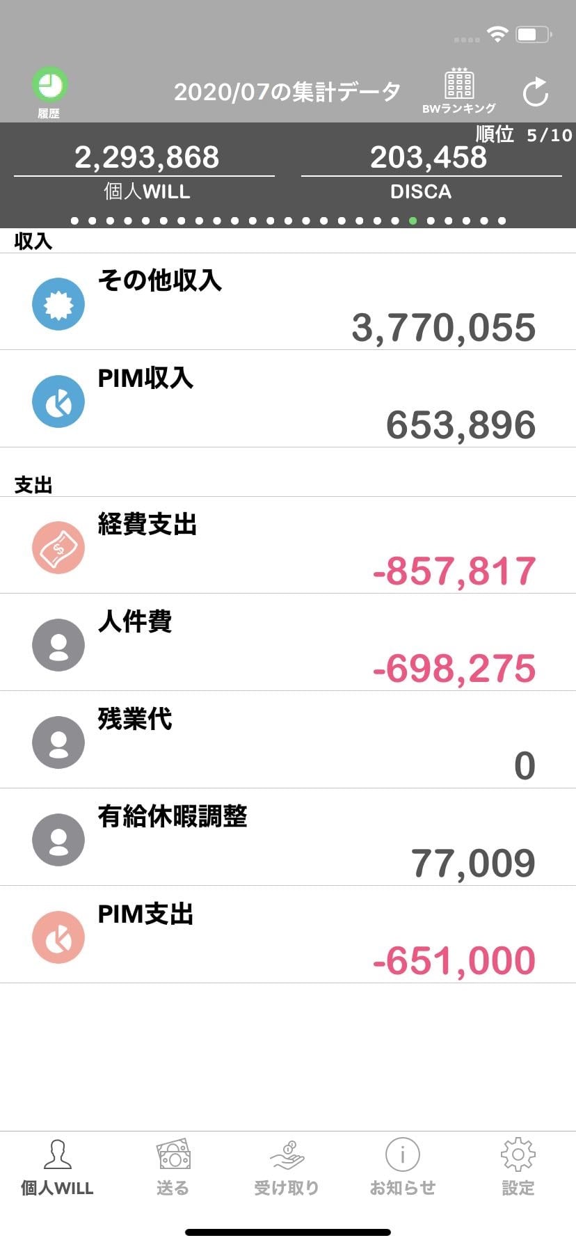 社有スマホのアプリでは、個人Willの収入と支出が一目瞭然に。