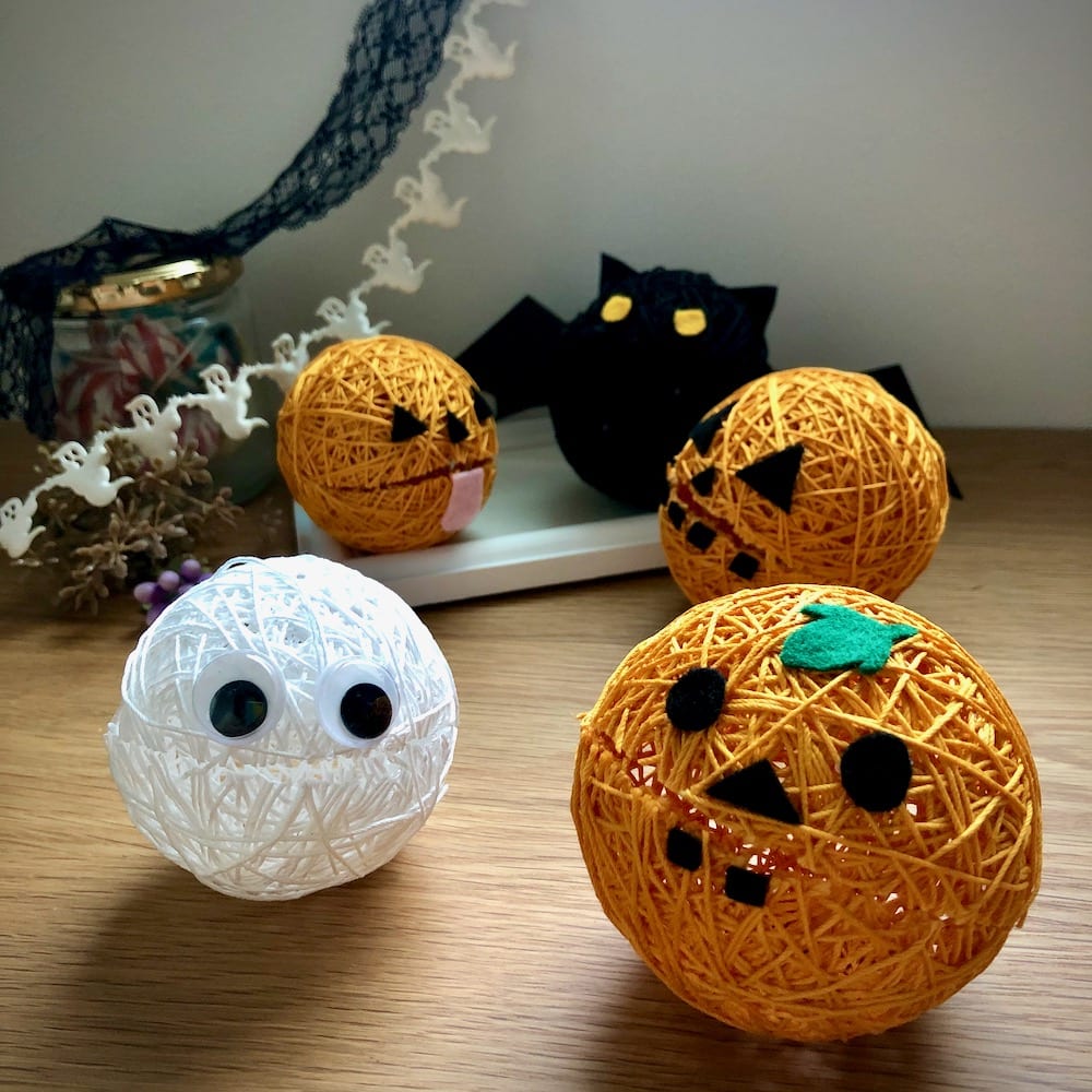 100均の材料でハロウィン飾り!コットンボールモンスターの作り方
