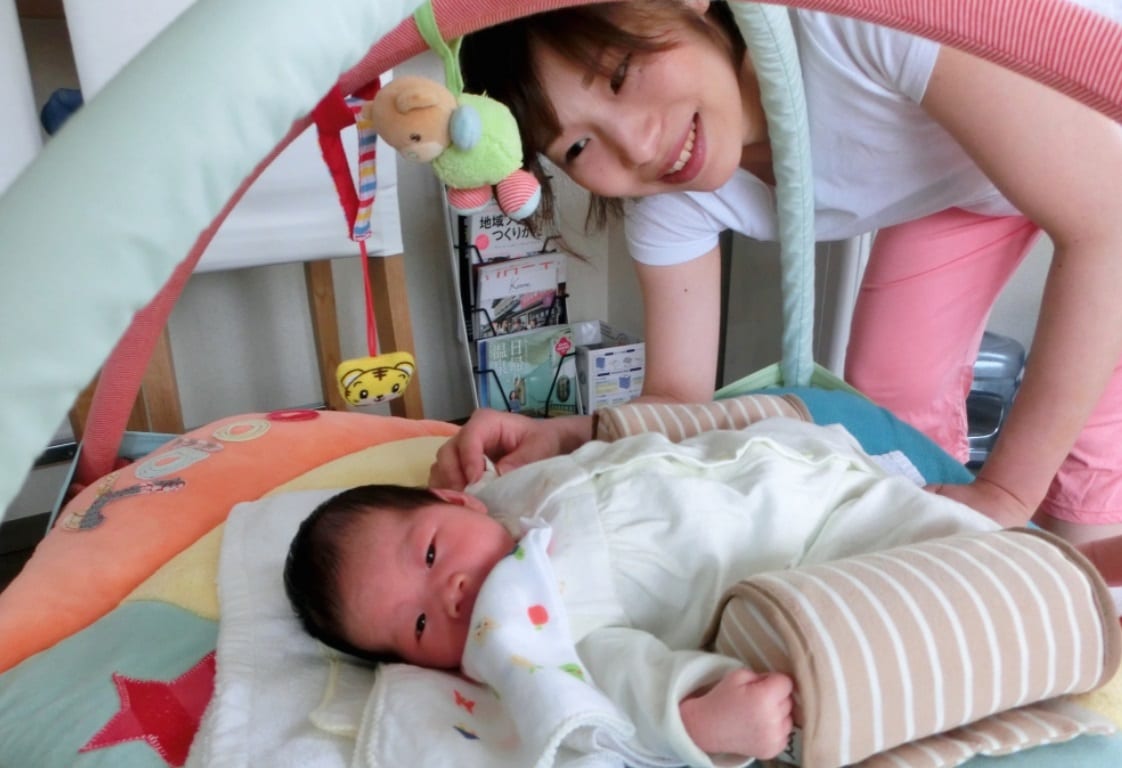 体調が安定しない妊娠期を乗り越えてお子さんを出産した百合子さん。遥さんと幸せに包まれた。
