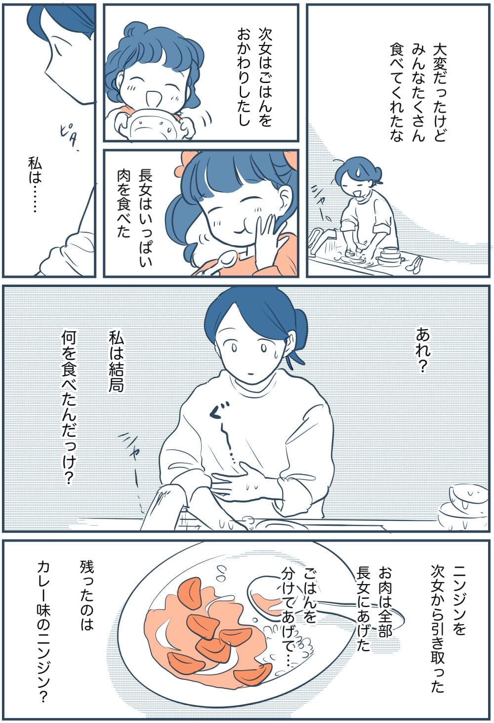 「にんじんを次女から引き取り、お肉は全部長女にあげた…私は何を食べたのだろう」