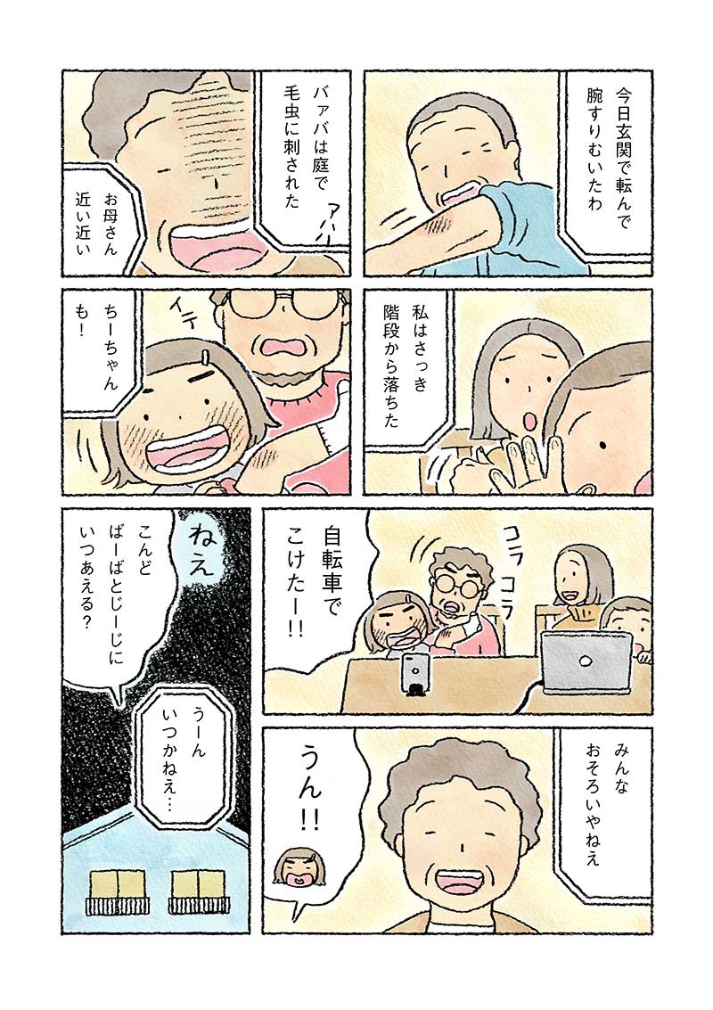 父は玄関で転び、バァバは庭で毛虫に刺された