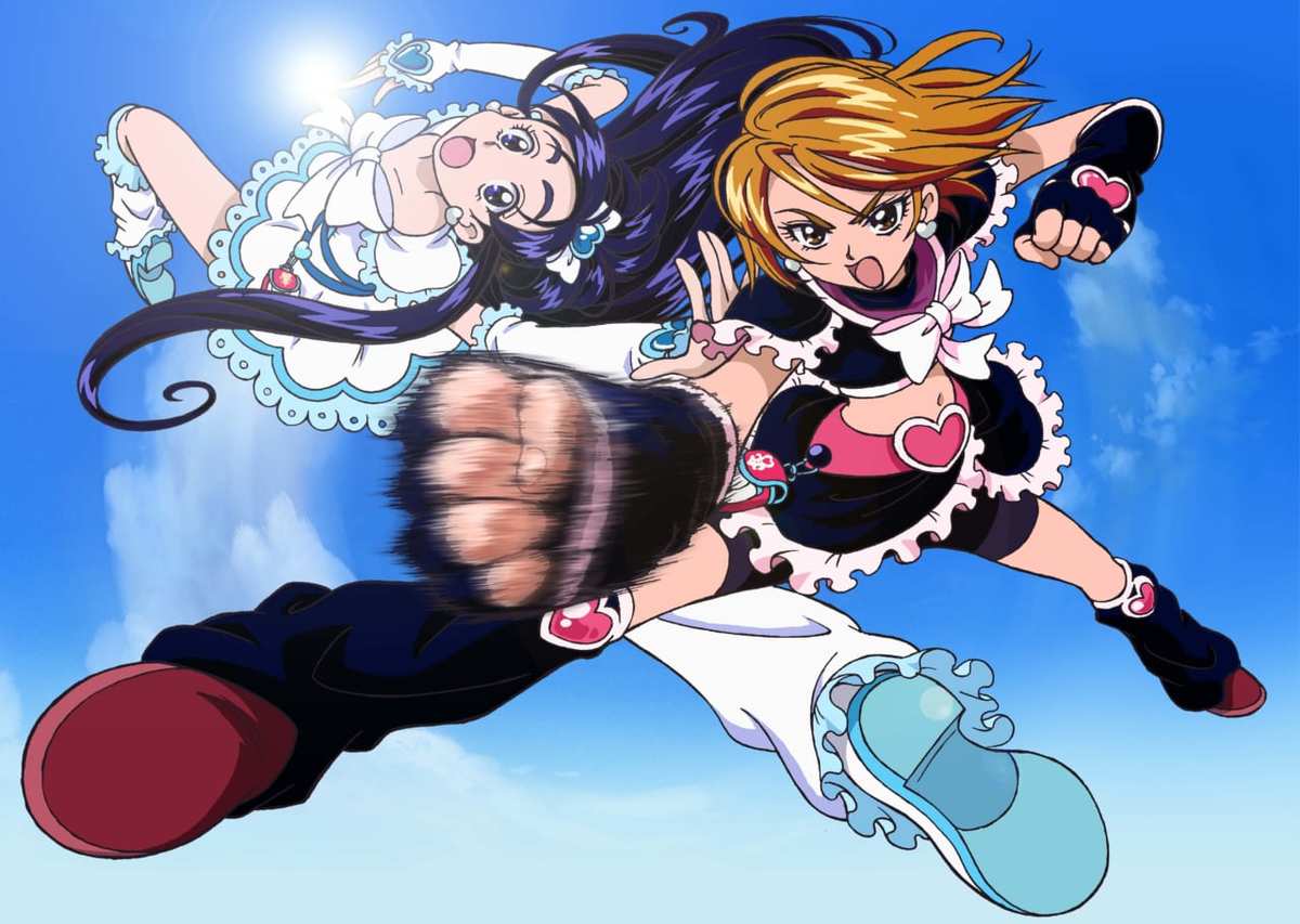 第1作『ふたりはプリキュア』のヒロイン。左がキュアホワイト(雪城ほのか)、右がキュアブラック(美墨なぎさ)。女児向け作品には珍しい迫力あるバトルシーンも放映当時は話題に