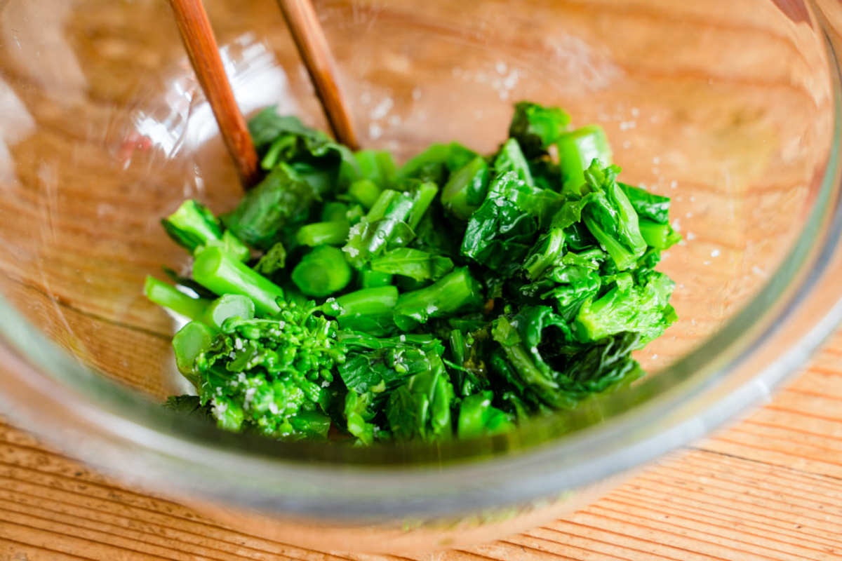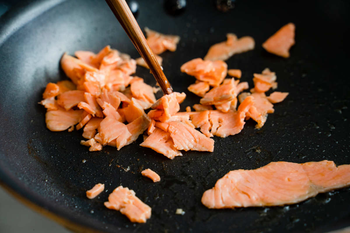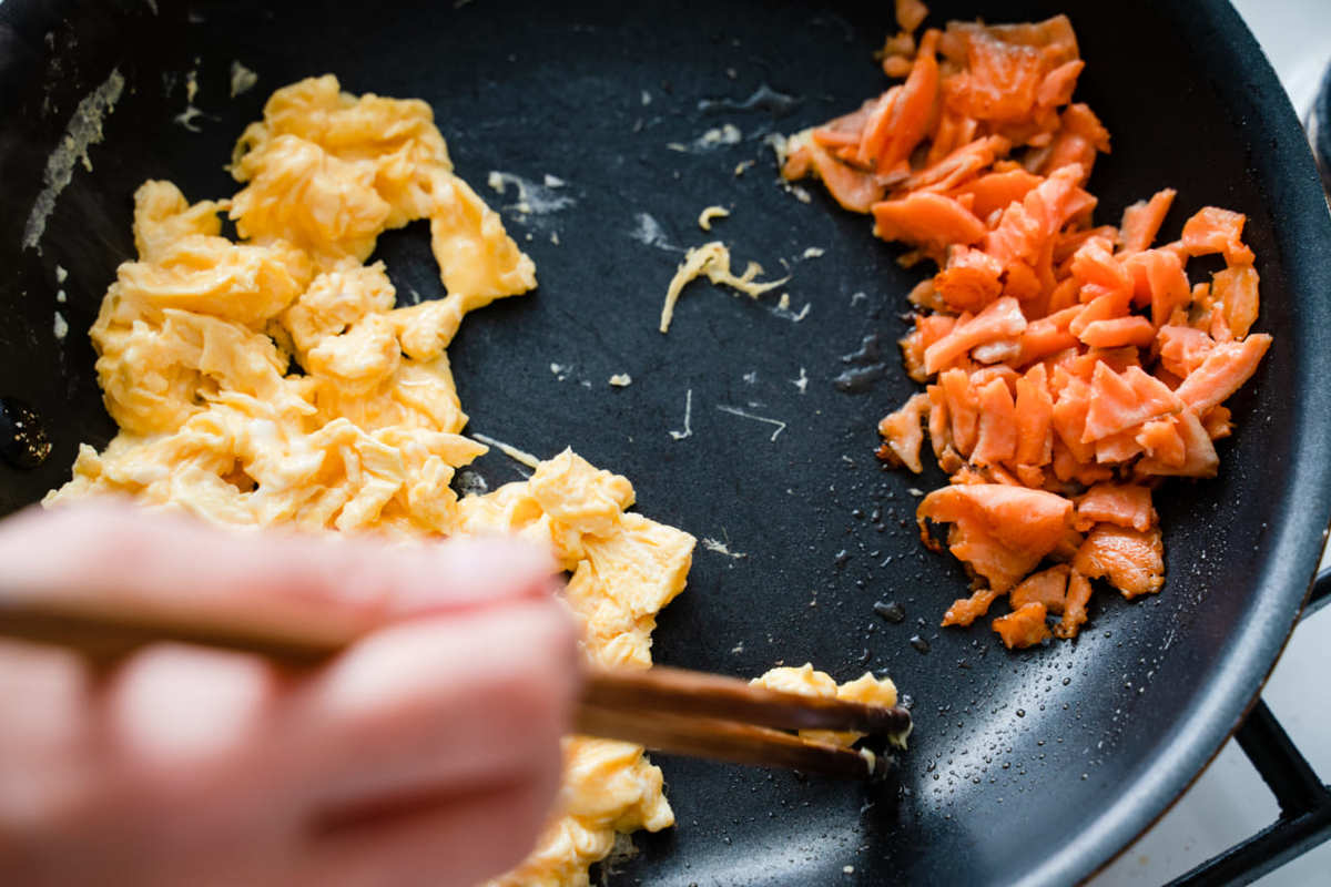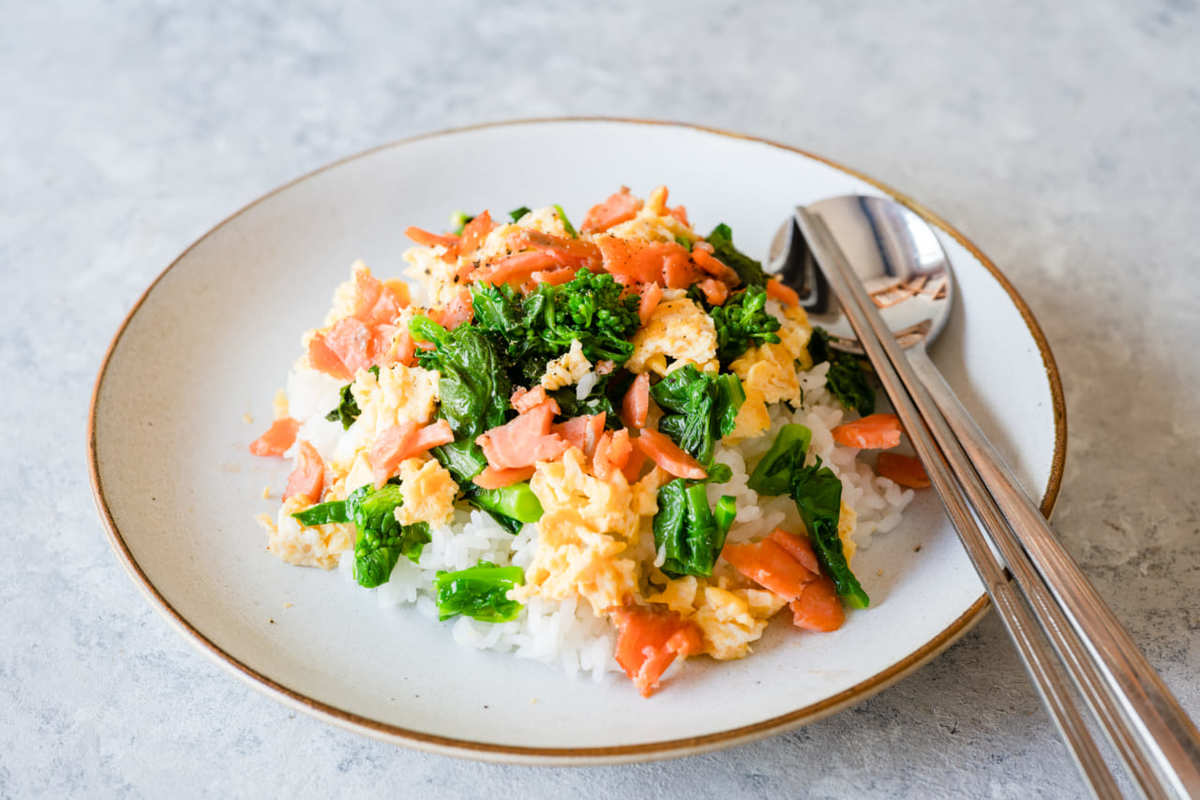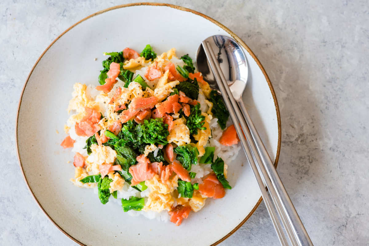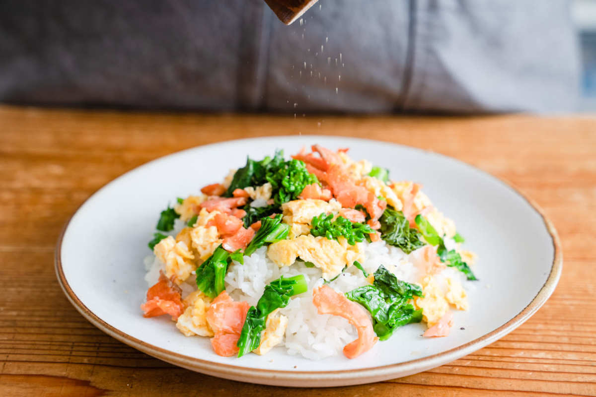 見た目も春らしい、スモークサーモンと菜の花のごはん