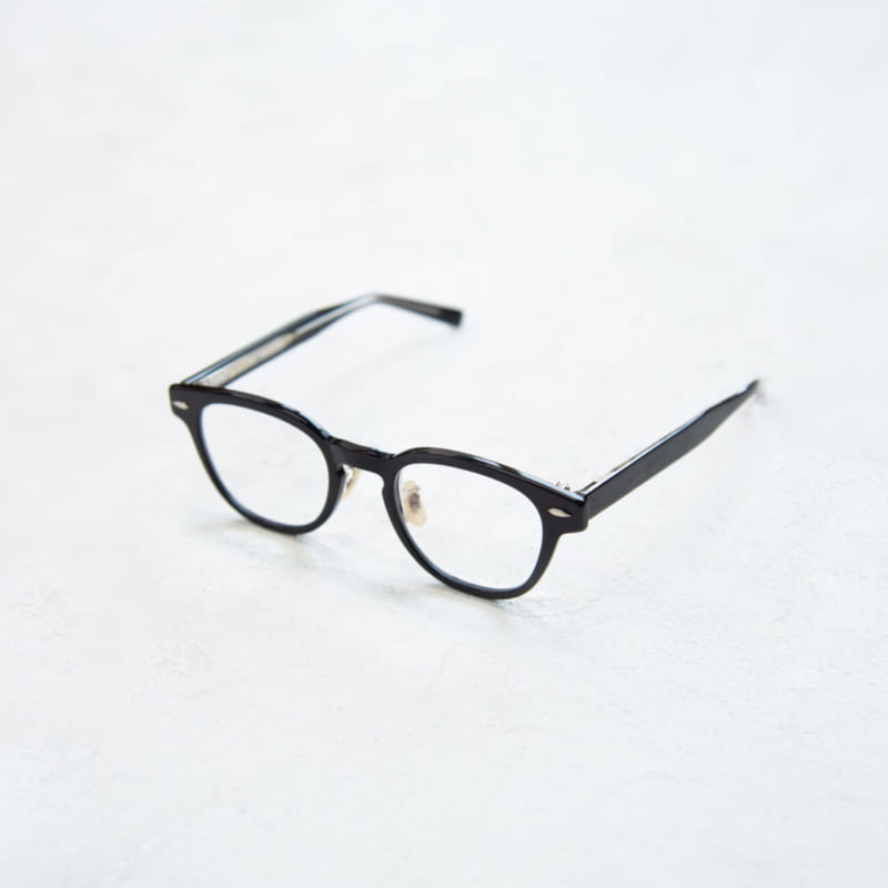 「アイヴァン」の黒ふちメガネ。「曇りのないレンズのツヤは、顔まわりをスッキリと見せ、清潔感も感じられます」(山本さん)