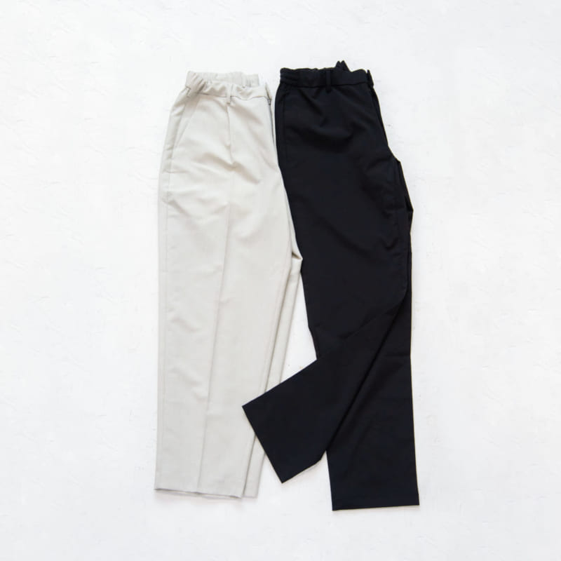 “UNIQLO×Theory”の今年のメンズの春夏コレクション。「テーパードパンツはセンタープレス入りだと脚長効果が!くるぶしくらいの着丈だと抜け感が出ます。それより短いと少年っぽい着こなしになるので注意して」(山本さん)