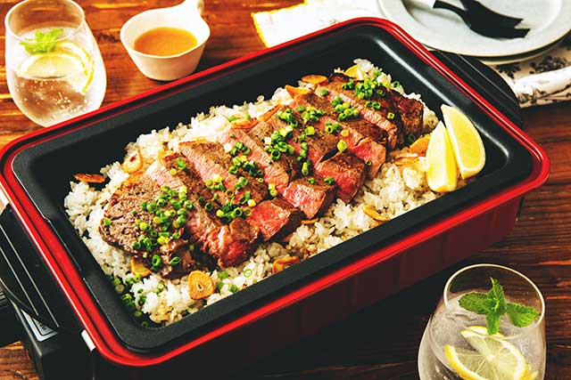 ホットプレートでガーリックライス「ステーキ肉をやわらかくするには!?」