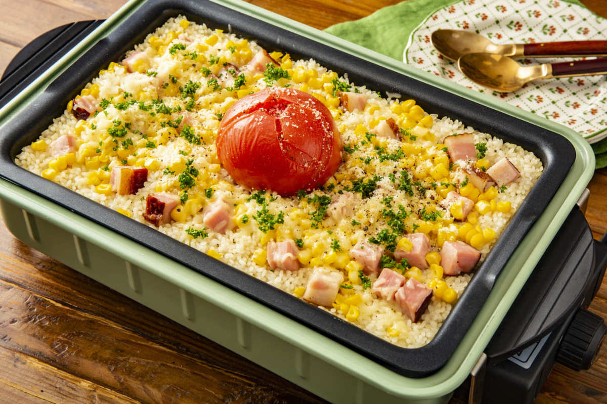 ホットプレートでトマトの炊き込みピラフ「丸ごと入れるの!?」