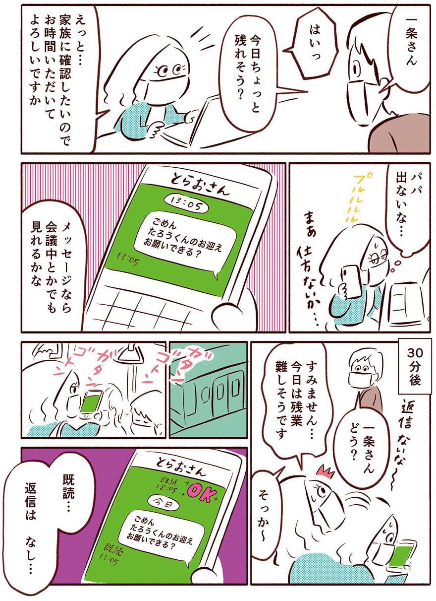 急な残業も夫は既読レスなし…お迎え問題が頭痛の種