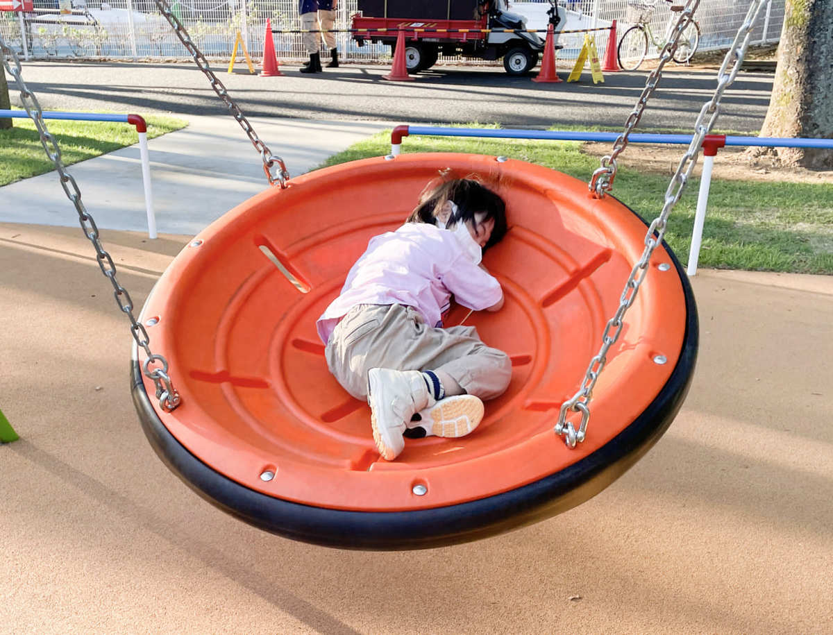 円型のブランコで遊ぶニコくん。そのほか、ベルト付きの椅子型ブランコもある。(写真提供/龍円さん)