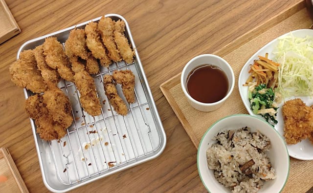 中村さんのお昼ご飯の1カット。家の残り物で済ますこともしばしば