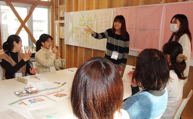 2015年2月にNP(ノーバディズ パーフェクト)講座でファシリテーターを務める荒木さん(中央奥)