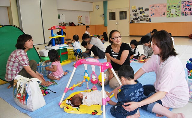 2018年ごろ、子育てひろばスマイルでのんびりくつろぐ母と子たち
