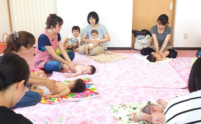 2016年5月ごろ、仮設団地内の開成診療所のフリースペースで、ベビーマッサージを開催