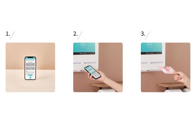 「OiTr」の使用方法。ディスペンサーに触れずにナプキンを受け取れる