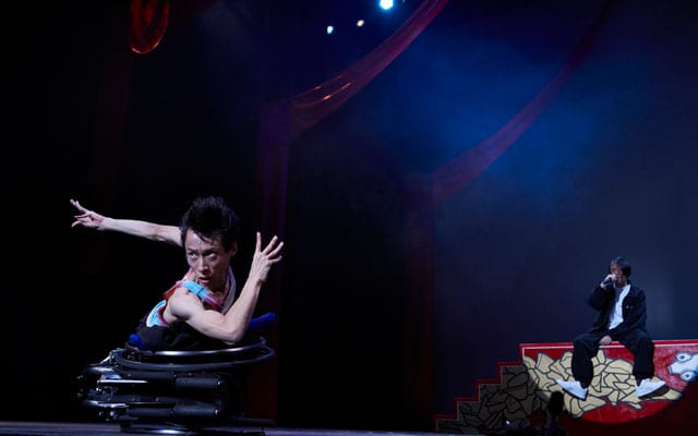 「MAZEKOZEアイランドツアー」のベースとなった舞台「月夜のからくりハウス」。自閉症のラッパーGOMESS(右)と車椅子ダンサーかんばらけんた(写真提供/Get in touch)
