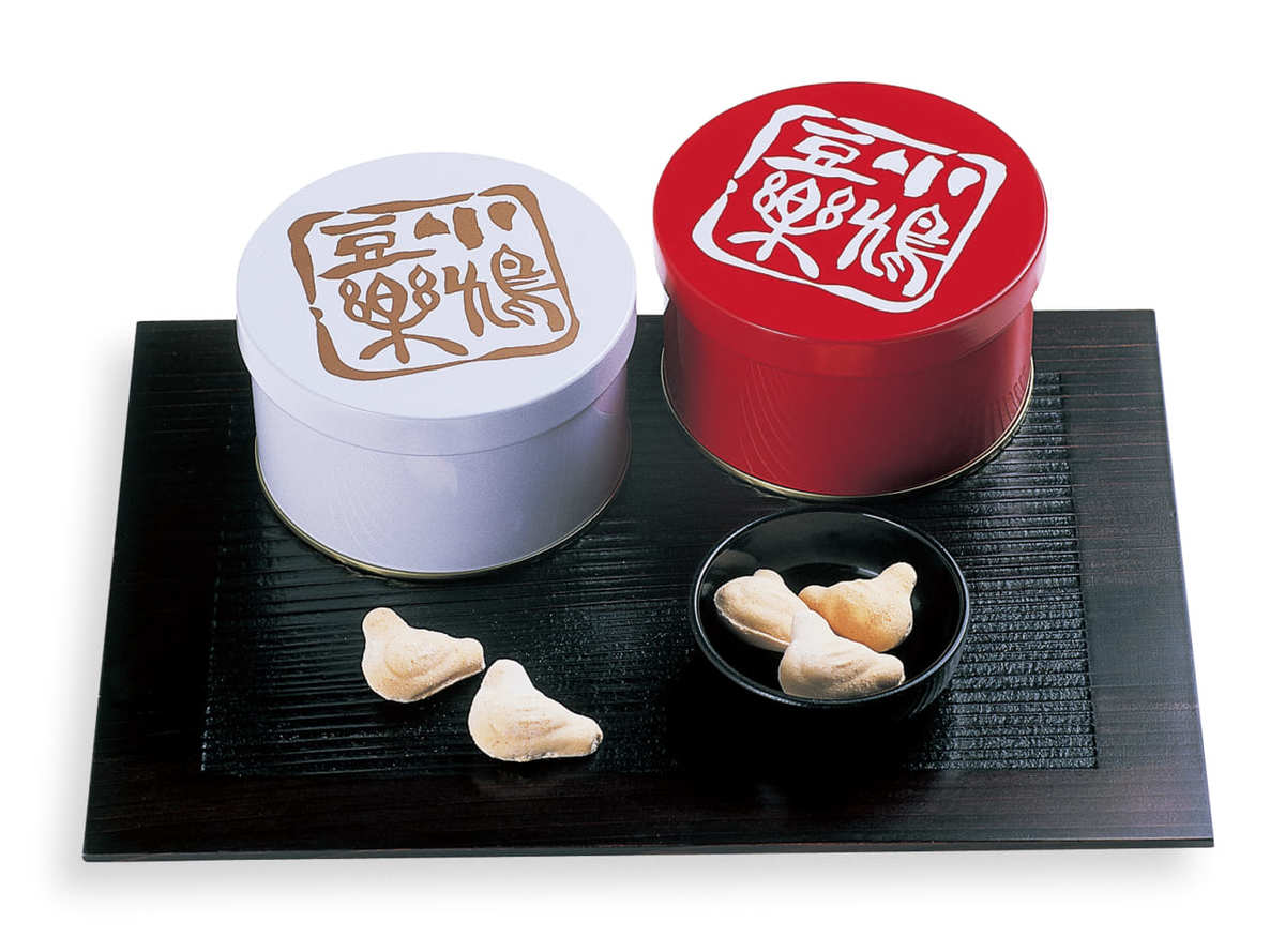「マメに楽しくお過ごしいただく様に」との願いがこめられた「小鳩豆楽」(白缶・赤缶各648円)