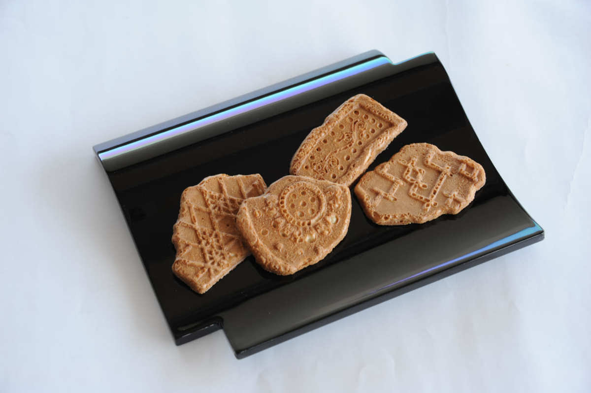 現在、「古代瓦せんべい」は同じ型でサイズを小さくして「もののふ」という商品名で販売している