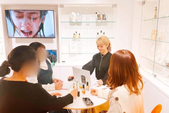 みずから経営するannfismの店舗で打ち合わせをする杏奈さん