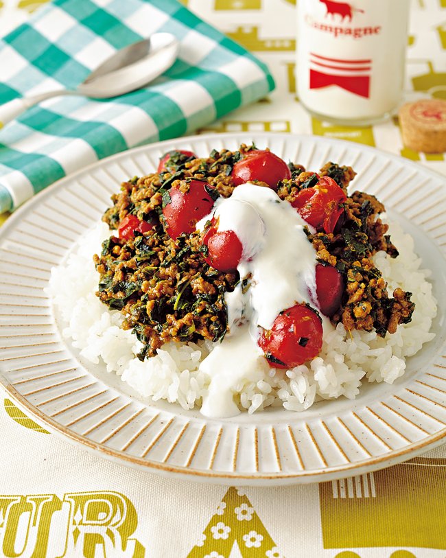 モロヘイヤとミニトマトのキーマカレーレシピ