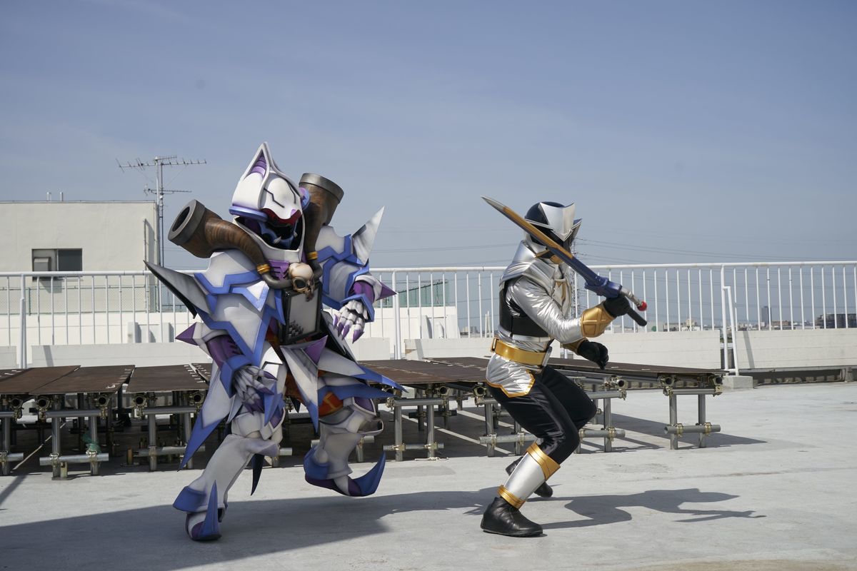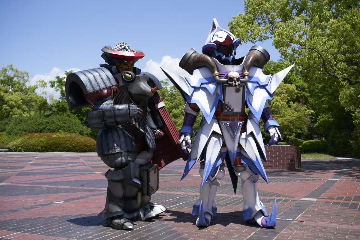 ▲劇場版に登場する、謎の狐怪人(右)とウィルソン(左)。
