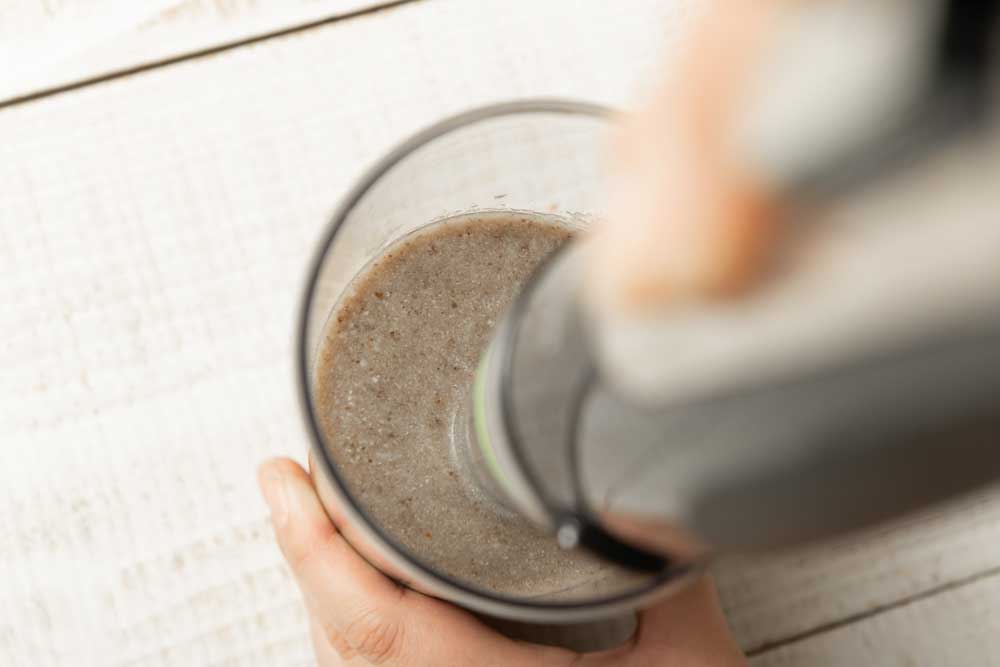 ▲スイッチを入れて30秒も立たないうちに、あっという間にペースト状になった。かくはん時の飛び散りも一切ない。