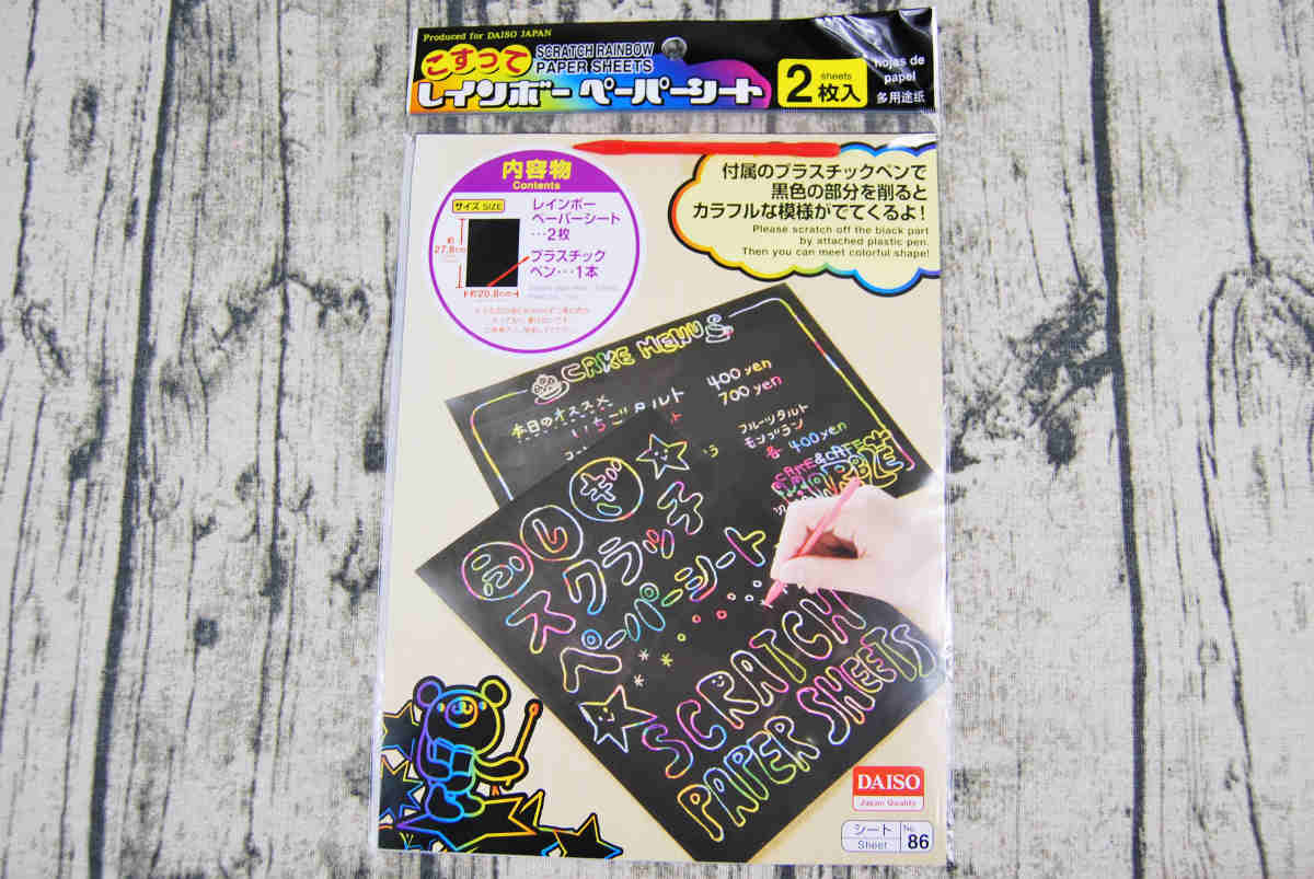ダイソー「こすってレインボーペーパーシート」虹色に文字が書ける魔法の紙、発見!