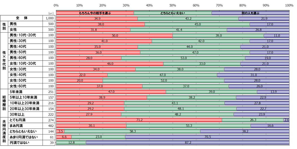 「生まれ変わったら別のパートナーを選ぶ」と30代以上の女性25%以上が回答