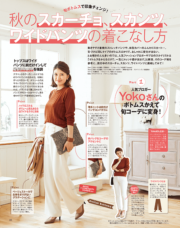 【ファッション特集】 旬ボトムスで印象チェンジ! 秋のスカーチョ、スカンツ、ワイドパンツの着こなし方