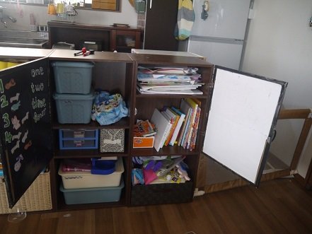 おもちゃの片付けタイムをカットしよう!カラボに扉で大人も子供も楽しく☆