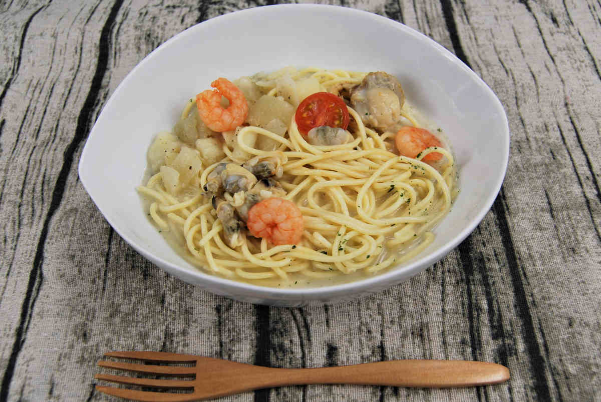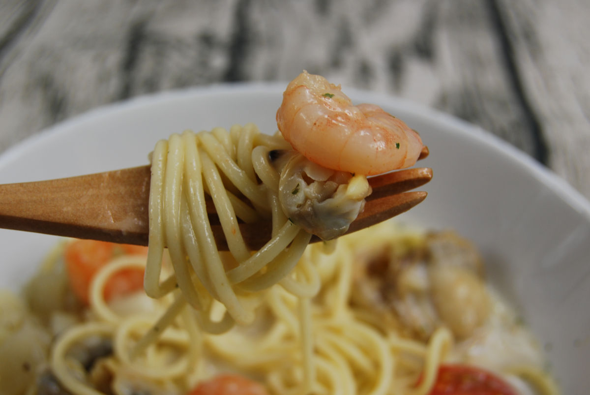 セブン「クラムチャウダーパスタ」魚介の旨み溢れるクリーミーなスープで体があったまる!
