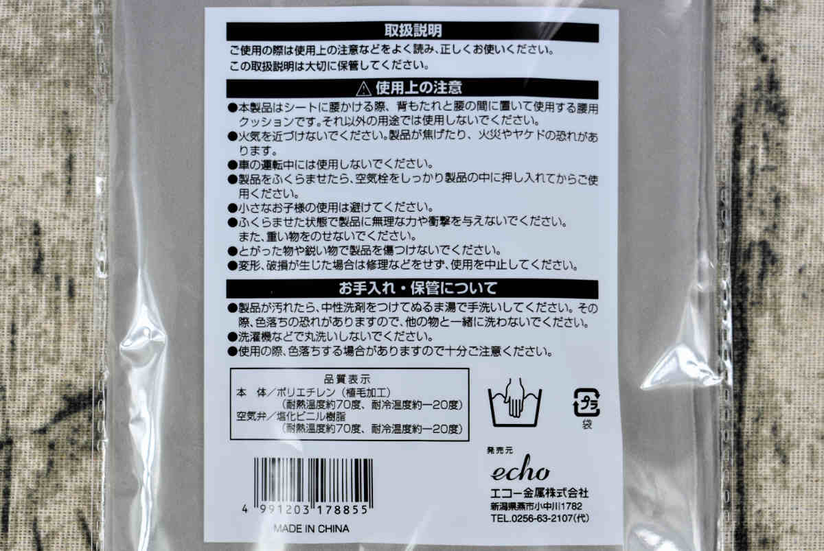 セリア「トラベル用 エアー腰まくら」旅行はもちろん、会社のデスクにも必需品になりそう!