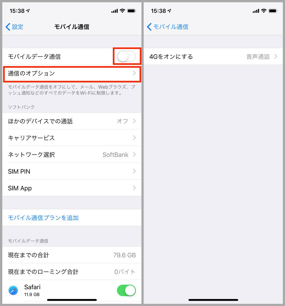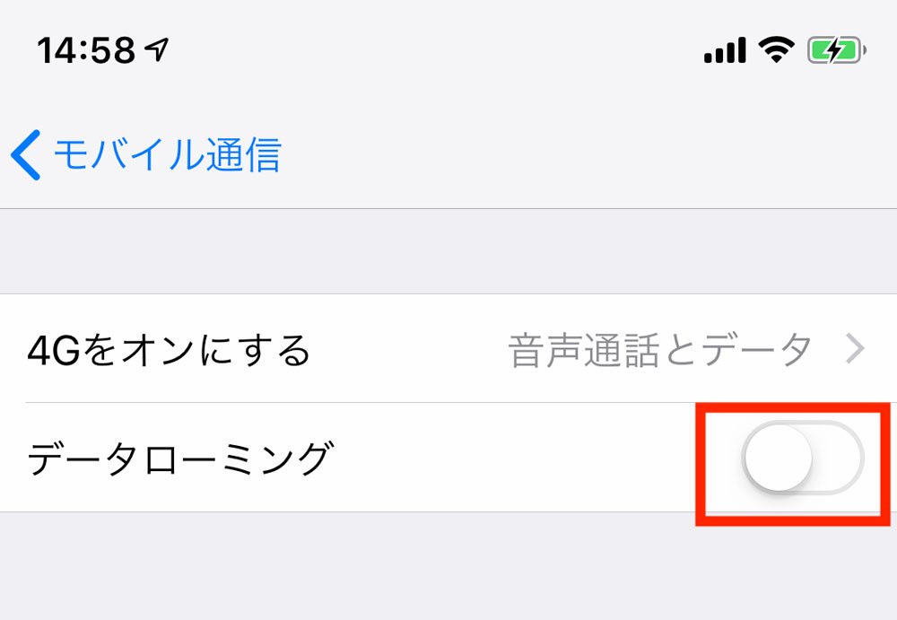 ▲iPhoneの場合は、「設定」→「モバイル通信」→「モバイルデータ通信」をオフにする